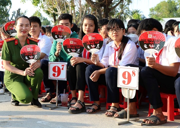 Cán bộ Phòng Cảnh sát điều tra tội phạm về ma túy Công an tỉnh tổ chức tuyên truyền nội dung phòng, chống ma túy cho học sinh Trường Trung học cơ sổ Nguyễn Trường Tộ (TP. Rạch Giá).